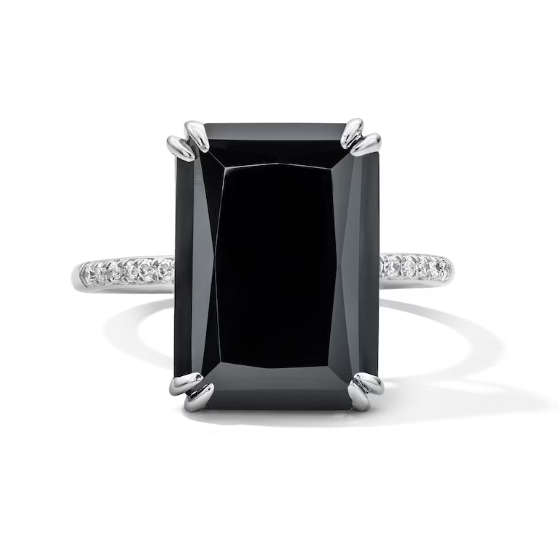 • Timeless yet daring, this cocktail ring highlights an emerald-cut black onyx complemented by 0.04 CT. T.W. diamonds for understated luxury.